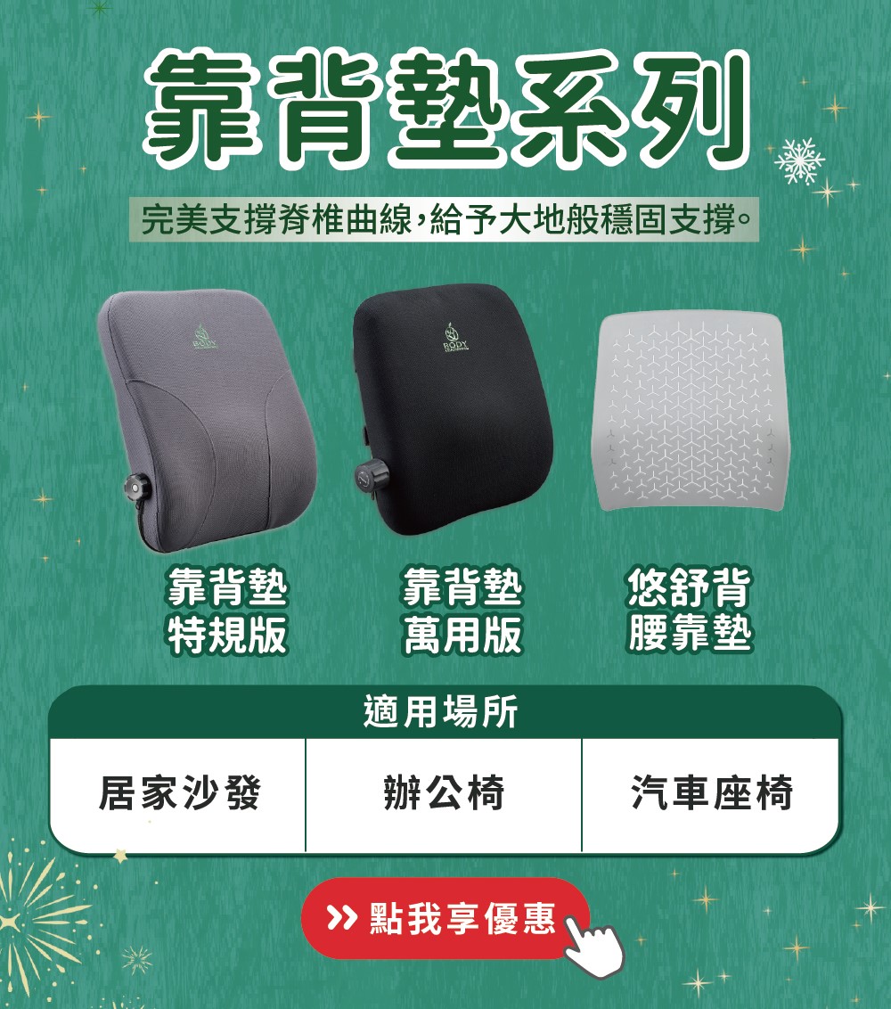 - 悠舒背人體工學腰靠墊(標準版/按摩版)