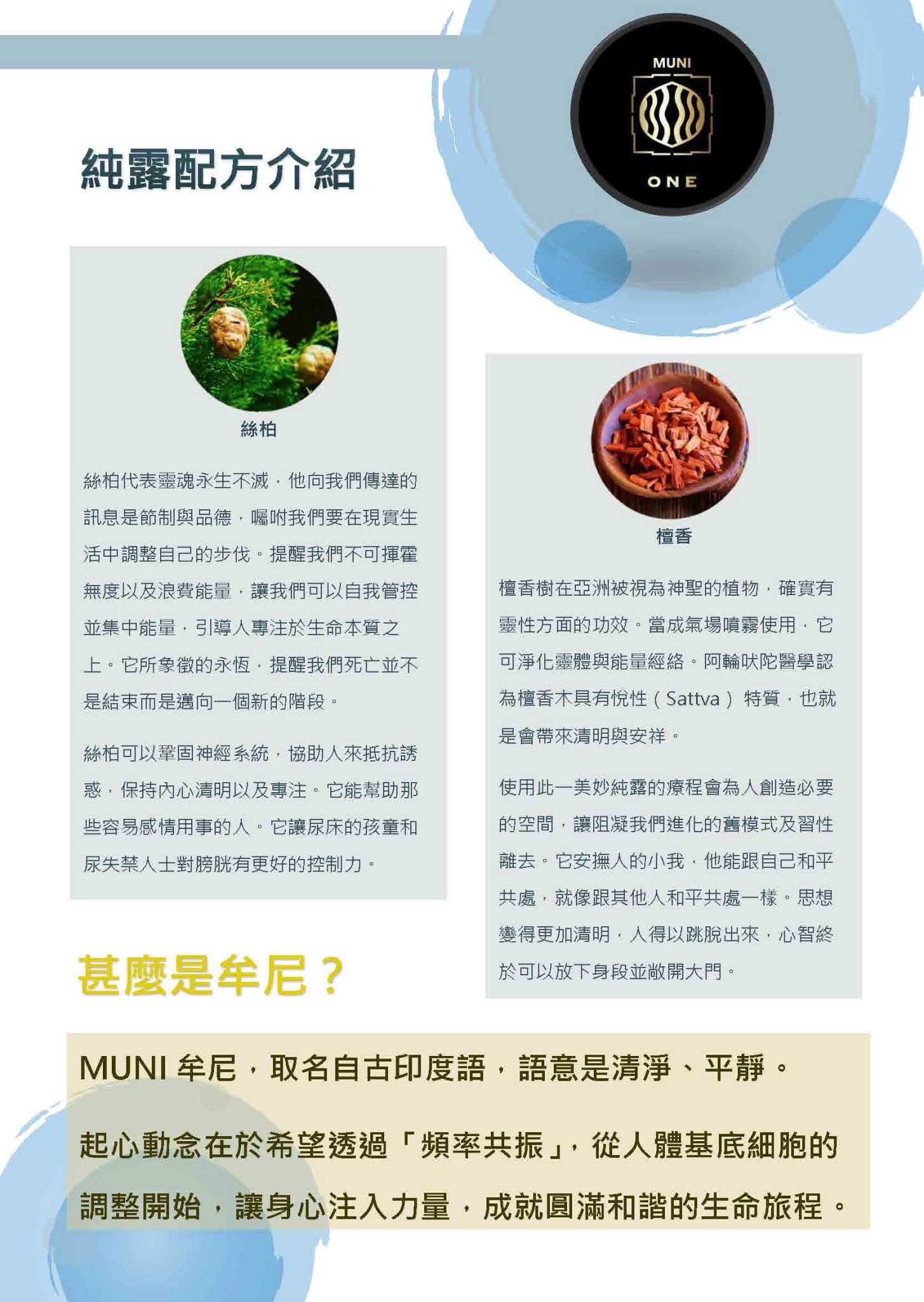 【Muni】牟尼能量純露100 ml配方 :大馬士革玫瑰 、橙花、茉莉、絲柏、檀香牟尼能量純露功效:肌膚保濕舒緩皮膚 平衡皮膚的溫度放鬆心情