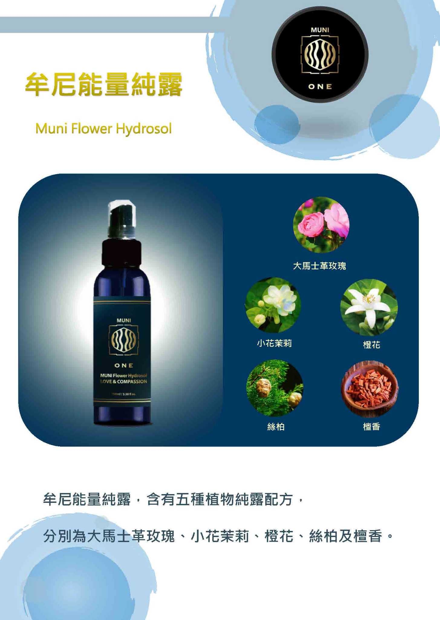 【Muni】牟尼能量純露100 ml配方 :大馬士革玫瑰 、橙花、茉莉、絲柏、檀香