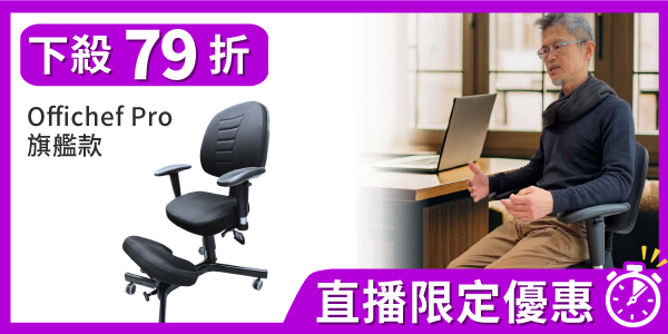 由於身體的慣性使然,我們在坐姿辦公、讀書的狀態下,上半身容易因專注而不自覺前傾,使身體過多的重量加諸於膝蓋。